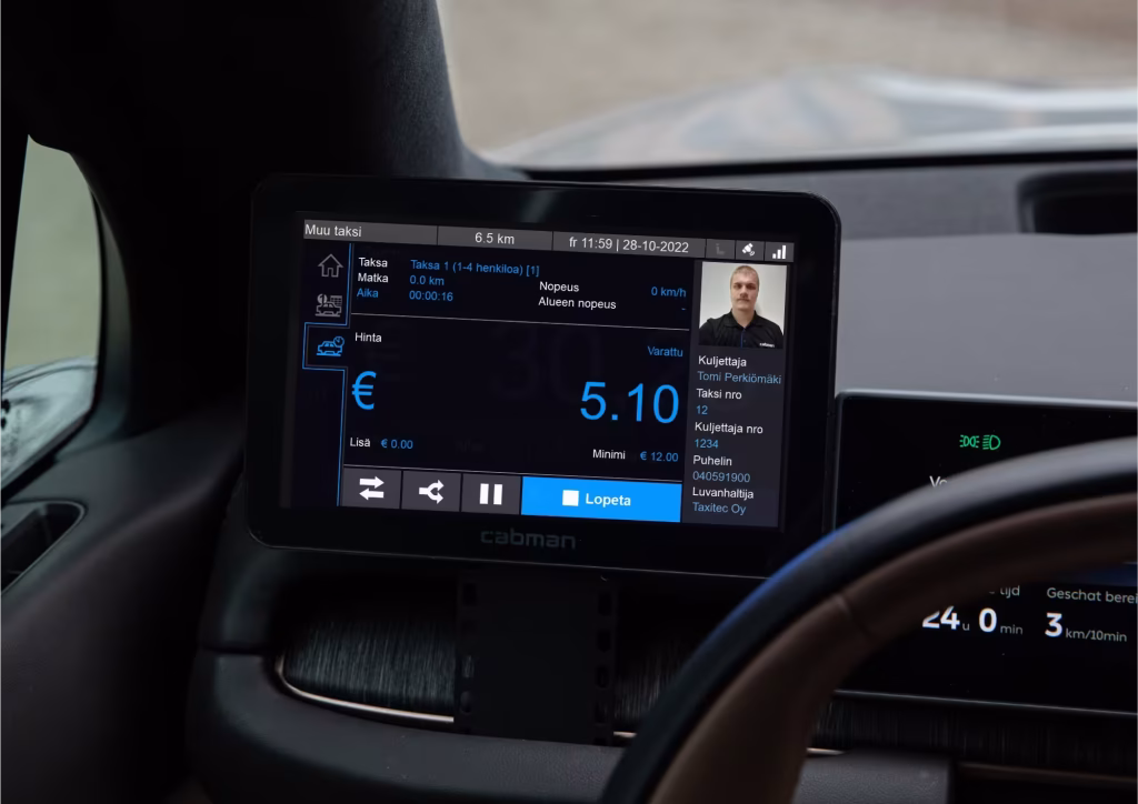 Cabman mittari on selkeä, helppokäyttöinen ja monpuolinen taksamittari, joka sopii niin pienille kuin suurille taksiyhtiöille. Cabman MDT toimii voi toimia integraatioiden avulla mittarin lisäksi myös ajonvälityspäätteenä.